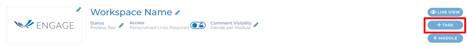 - Simply click on the +Task button on the top right hand corner to the right of the workspace name